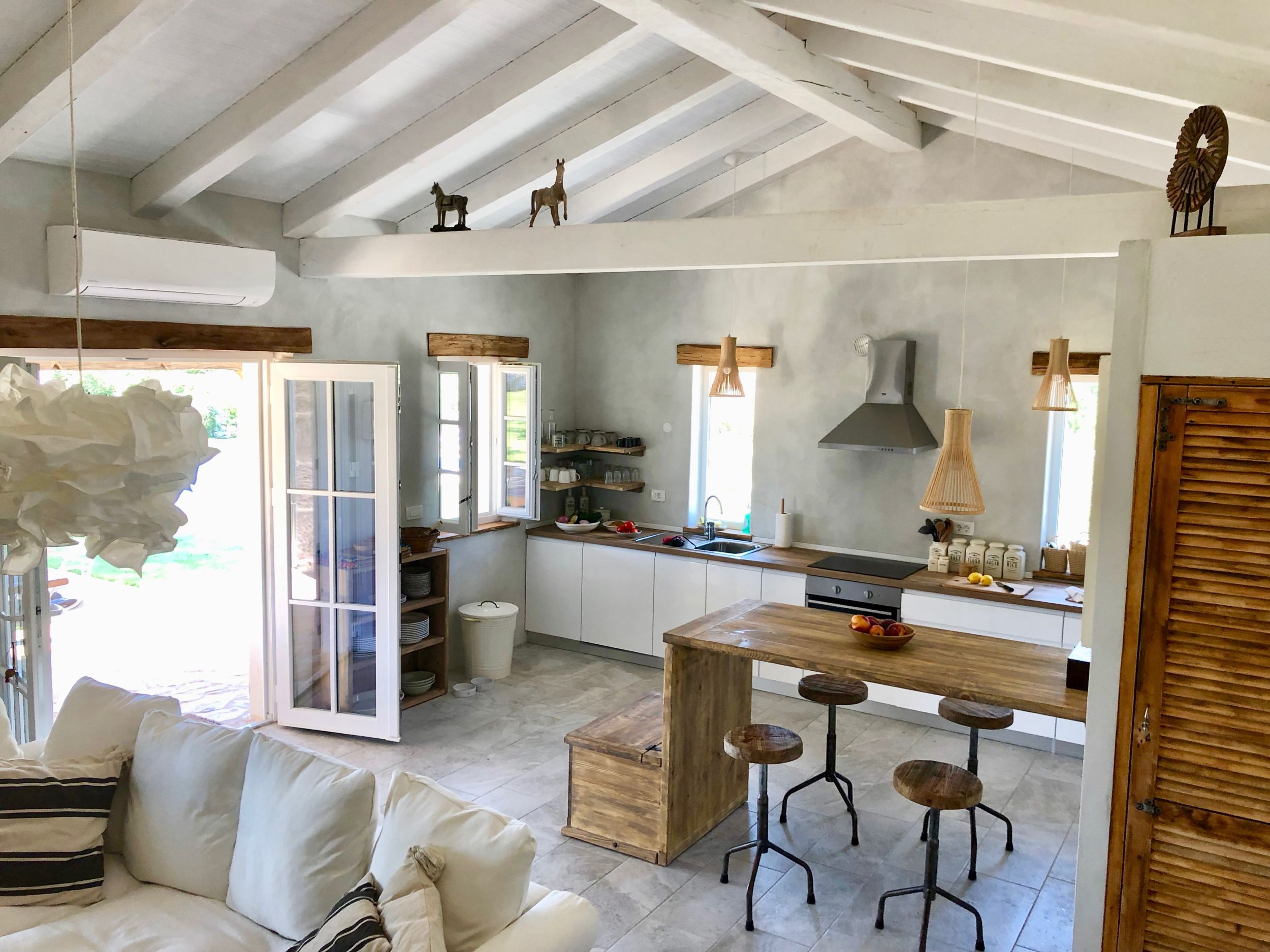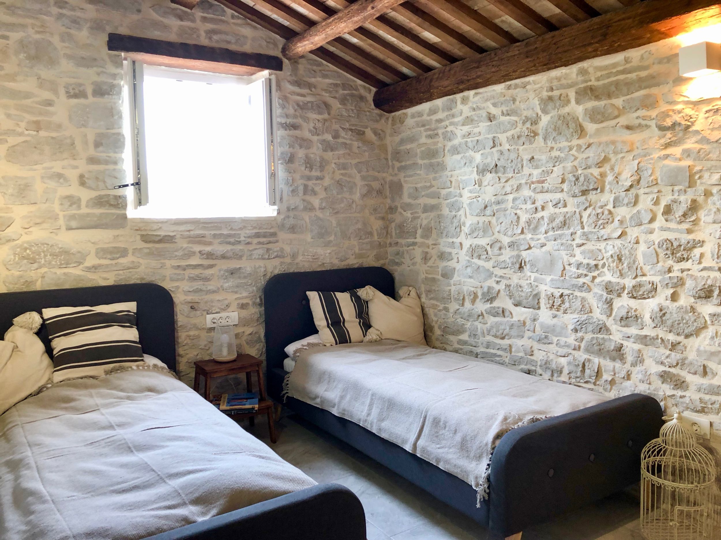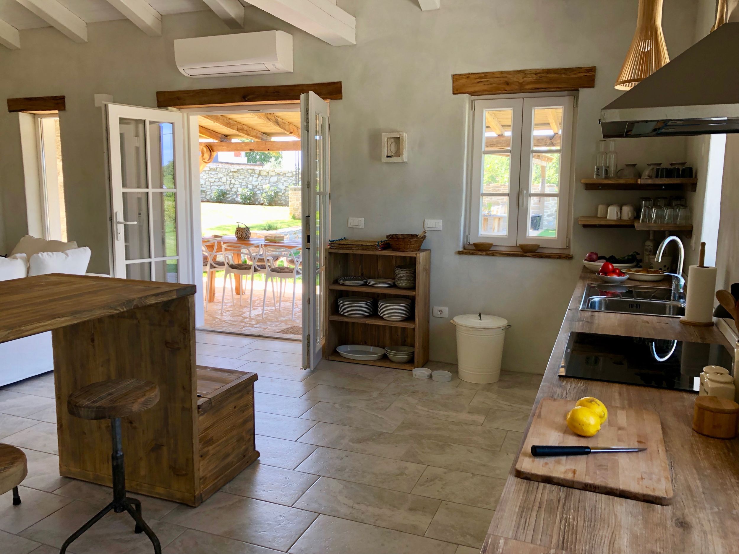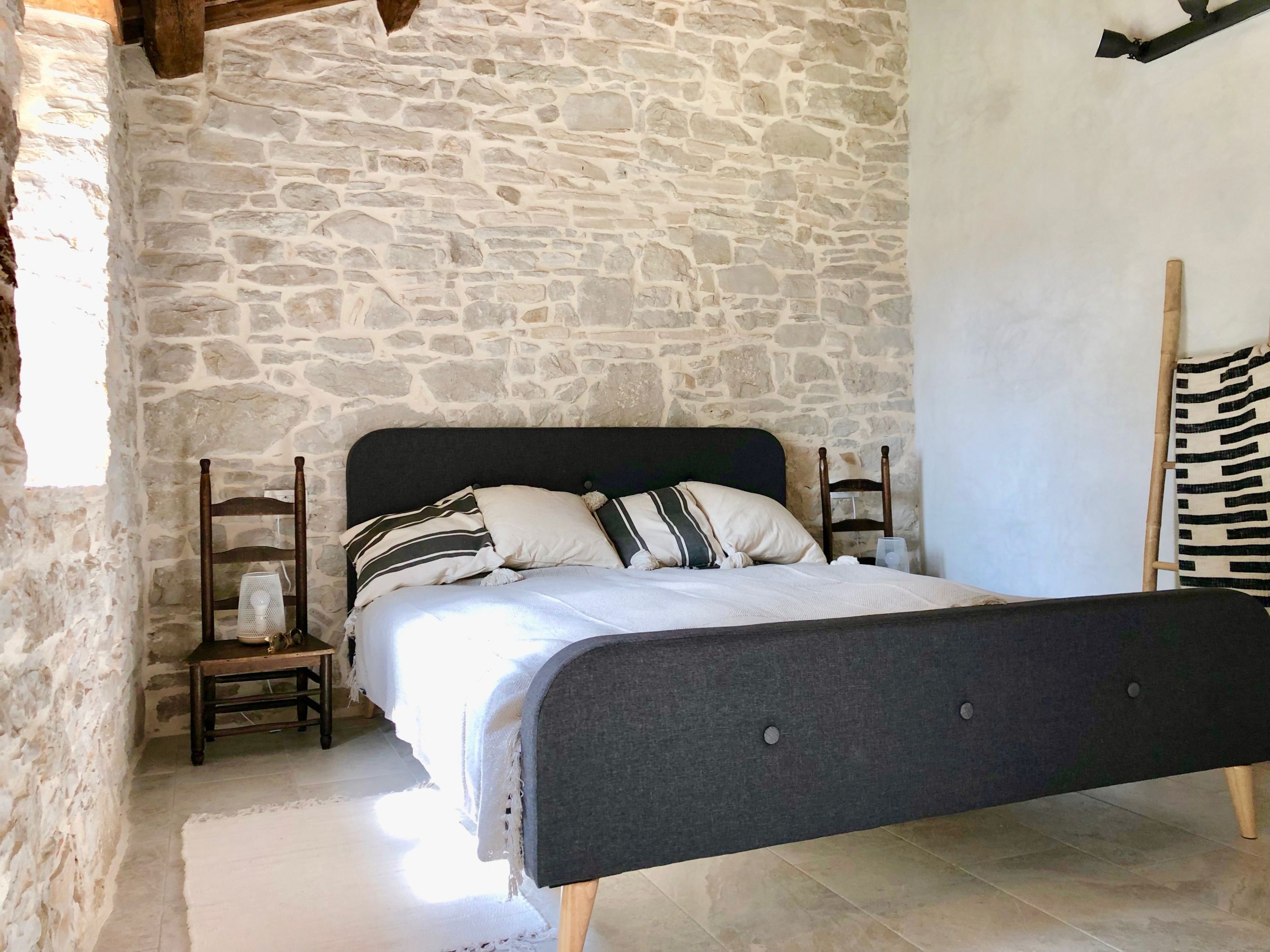 Die Luxus Villa erfüllt alle modernen Anforderungen mit einer luxuriösen Mischung aus Alt und Neu, wobei der Grundriss, die Inneneinrichtung, die sorgfältig ausgewählten Möbel und alle Details sicherlich auch den anspruchsvollsten Gast zufrieden stellen werden. Die Miet Villa Bofina bietet Platz für 8 Gäste in vier Schlafzimmer, mit zwei Bädern. Alle Schlafzimmer und Bäder befinden sich im alten Steinhaus, wobei 2 Schlafzimmer und ein Bad sich im Erdgeschosse befinden und sie die gleiche Anordnung im ersten Stock wiederfinden. Diese Einrichtung macht die Luxus Villa Bofina ideal für zwei Familien. Im Neubau befindet sich die Küche, der Esstisch und das Wohnzimmer. Vom Neubau aus gibt es einen direkten Zugang zur überdachten Terrasse mit großer Esstisch. Von der Terrasse aus blickt man auf den Garten sowei den Pool. Am großen Pool (9 x 4,5) ist eine überdachte Lounge Area und dahinter ein traditioneller Grillplatz.